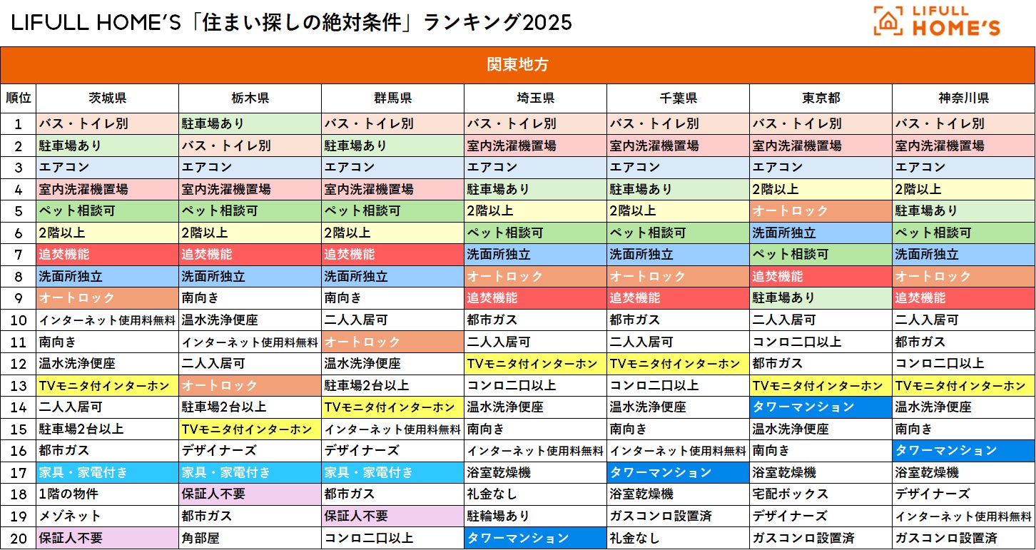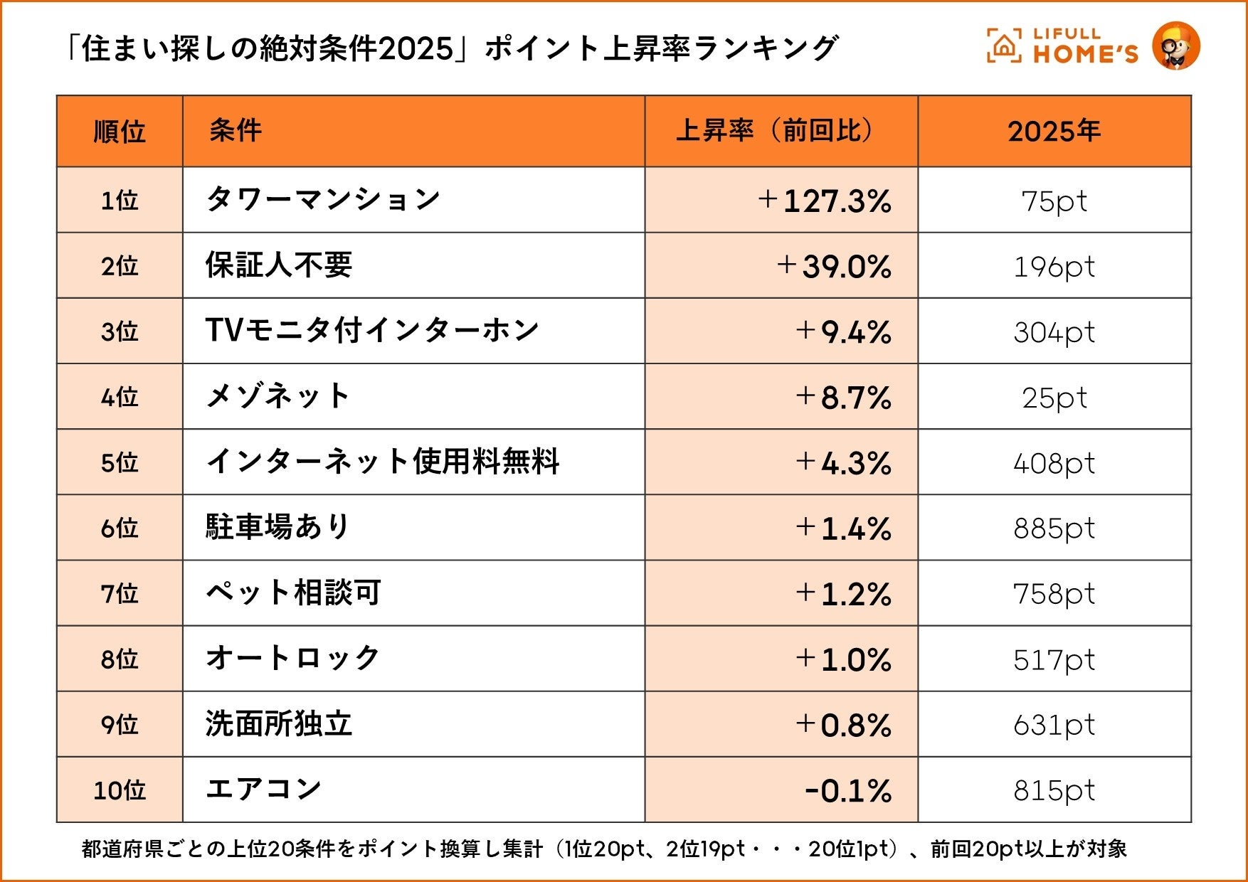LIFULL HOME'S「できれば検索」における「住まい探しの絶対条件2025」、「タワーマンション」が全国的に上昇!