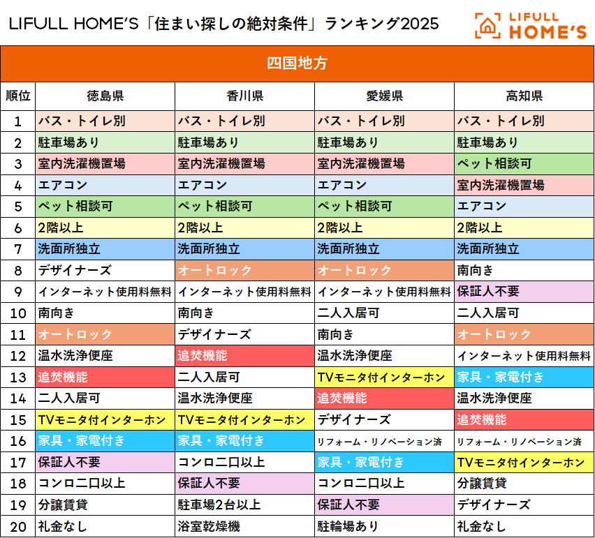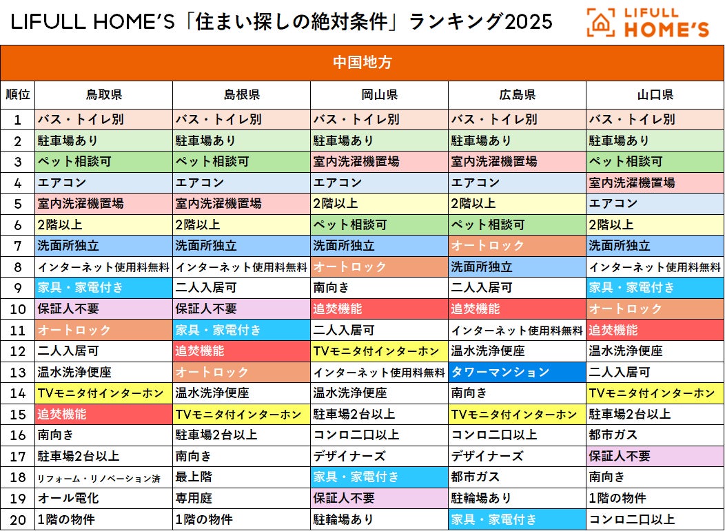 事業を通して社会課題解決に取り組む株式会社LIFULL(ライフル)(本社:東京都千代田区、代表取締役社長:伊東祐司、東証プライム:2120、以下「LIFULL」)が運営する不動産・住宅情報サービス「LIFULL HOME'S」は、賃貸物件の検索条件を「できれば/必須」で優先順位づけをして検索できる機能「できれば検索」(※1)において、必須条件として選ばれた全国47都道府県の「住まい探しの絶対条件」を調査し、発表します。※1 特許第7168296号