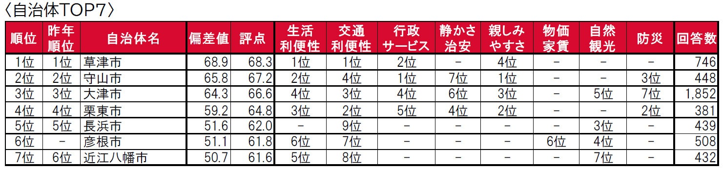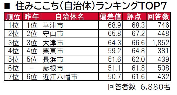 •昨年は滋賀県内のみの自治体を対象に集計していたため、県外の自治体の昨年順位は「-」となっています。