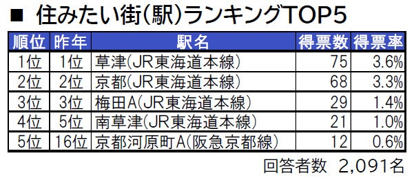 •住みたい街ランキングでは、行政区はまとめて一つの自治体として集計していますが、大阪市・京都市・神戸市・堺市は行政区を分けて集計しています。