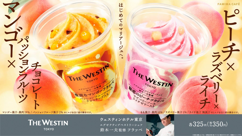 株式会社ファミリーマート(本社:東京都港区、代表取締役社長:細見研介)は、昨年から取り組んでいる5つのキーワードの1つである「もっと美味しく」の一環として、コーヒーマシンのミルクで作る「FAMIMA CAFÉ」のフラッペシリーズから、ウェスティンホテル東京(東京都目黒区 総支配人チャールズ・ジャック)エグゼクティブペストリーシェフ・鈴木一夫氏監修のもと開発した「ウェスティンホテル東京監修 豊潤なマンゴーフラッペ」325円(税込350円)と「ウェスティンホテル東京監修 魅惑のピーチフラッペ」325円(税込350円)の2種類を2022年7月19日(火)から全国のファミリーマート約16,600店にて発売いたします。