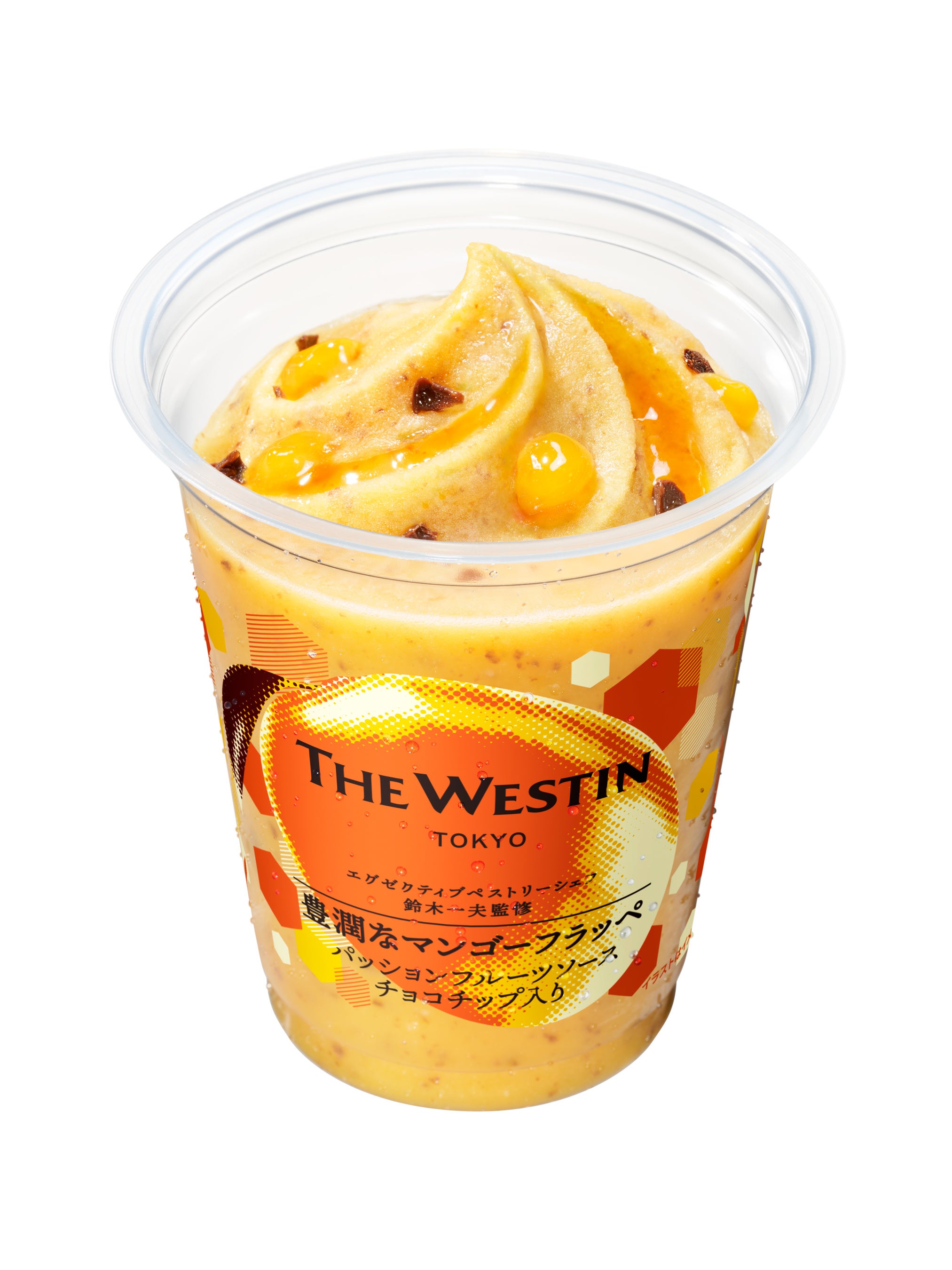 【内容】ウェスティンホテル東京のエグゼクティブペストリーシェフ鈴木一夫氏監修のもと開発したフラッペです。マンゴー果肉ソース、パッションフルーツソース、チョコチップを使用し、3種が織りなす味わいのマリアージュをお楽しみいただけます。