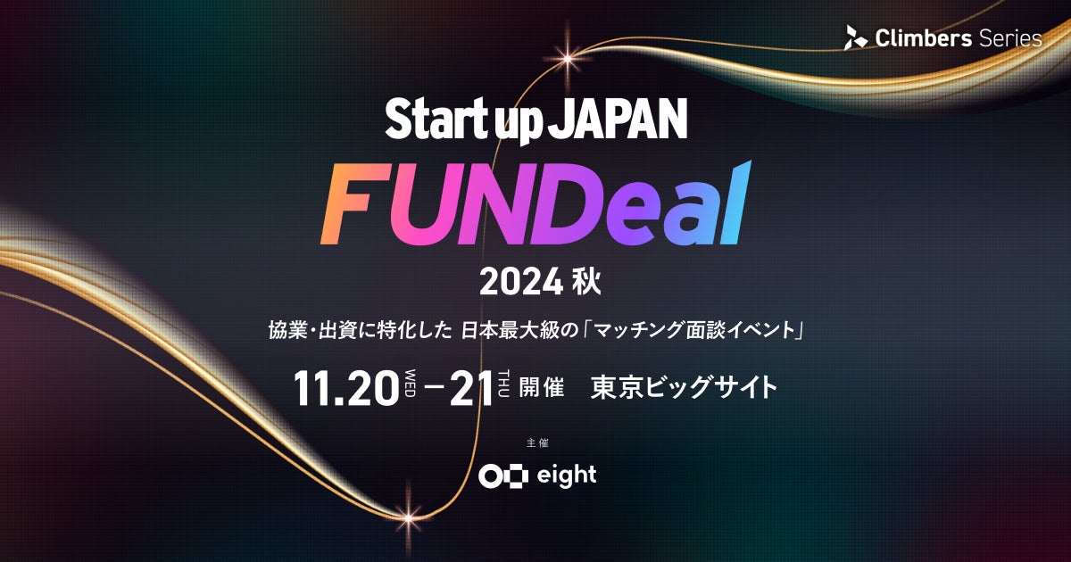 また、「Startup JAPAN EXPO 2024 - 秋 -」に加え、協業・出資に特化した日本最大級のマッチング面談イベント「Startup JAPAN FUNDeal 2024 - 秋 -」を同時開催します。「Startup JAPAN FUNDeal 2024 - 秋 -」では、詳細なアンケートを基に精度の高い事前マッチングを行うことで、効率的な面談を実現します。