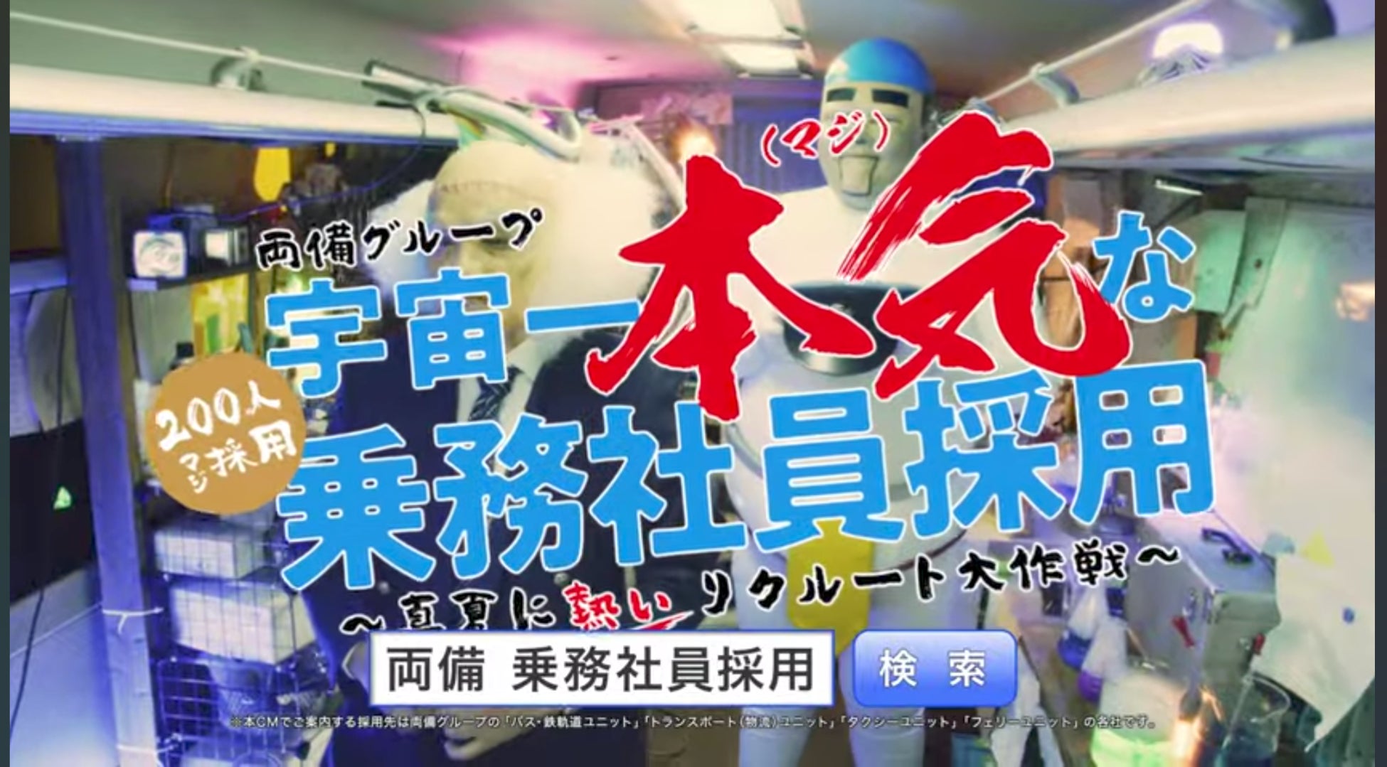 「宇宙⼀本気(マジ)な乗務社員採⽤プロジェクト」とは、両備グループの交通運輸に携わる事業会社が⼀丸となって取り組む乗務社員に特化した採⽤活動のことで、TVCMが公開され、業界内で注⽬を集めている取り組みです。