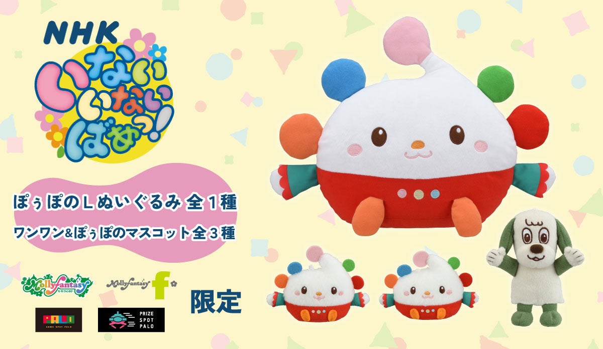 NHK Eテレ「いないいないばあっ!」のキャラクター「ぽぅぽ」の限定プライズがモーリーファンタジーで初登場。「ぽぅぽ」が高さ約29cmのビッグサイズぬいぐるみになった「NHKいないいないばあっ! ぽぅぽのLぬいぐるみ」と、「ワンワン」と表情・ポーズ違いの「ぽぅぽ」がマスコットサイズのぬいぐるみになった「NHKいないいないばあっ! ワンワン&ぽぅぽのマスコット」の2アイテムを展開します。