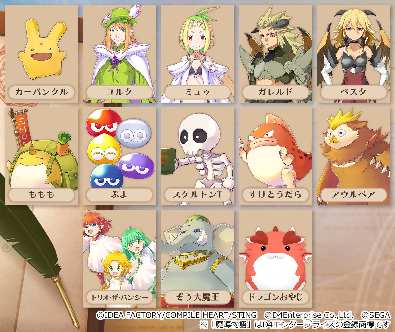 「カーバンクル」や「ぷよ」などの懐かしの「魔導物語」のキャラクターたちも登場し、多数の魅力的なキャラクターが「魔導物語」の新章を盛り上げます!