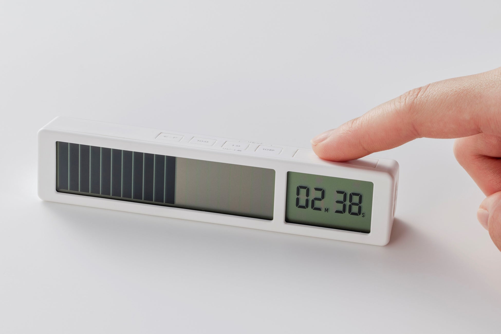 「なんで今までなかったのだろう?」と思わせる商品こそが、良いデザインの現れである。ディスプレイがシンプルで、残り時間を数字だけでなく、バーの残り具合で直感的に把握できる仕掛けが画期的だ。数字が苦手な人にとっても、時間を体感的に理解できる優しい仕掛けとなっている。サイズもちょうど良く持ち運びが容易であり、さまざまな環境や状況での使用が期待できる、シンプルかつ重要なプロダクトである。