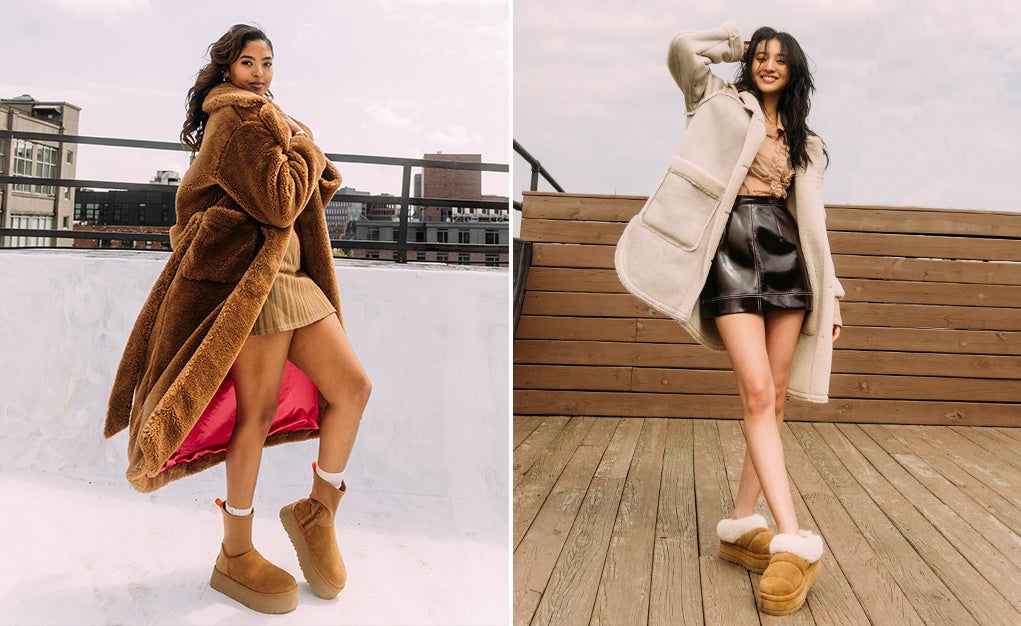 本キャンペーンに登場するスタイルは、プラットフォーム、新しいカラーリング、オーバーサイズのシルエット、そして責任ある素材(環境や社会に配慮した素材)が特徴で、UGGのヘリテージに敬意を払いつつ、パワーアップしたマキシマリストなデザインが多数!