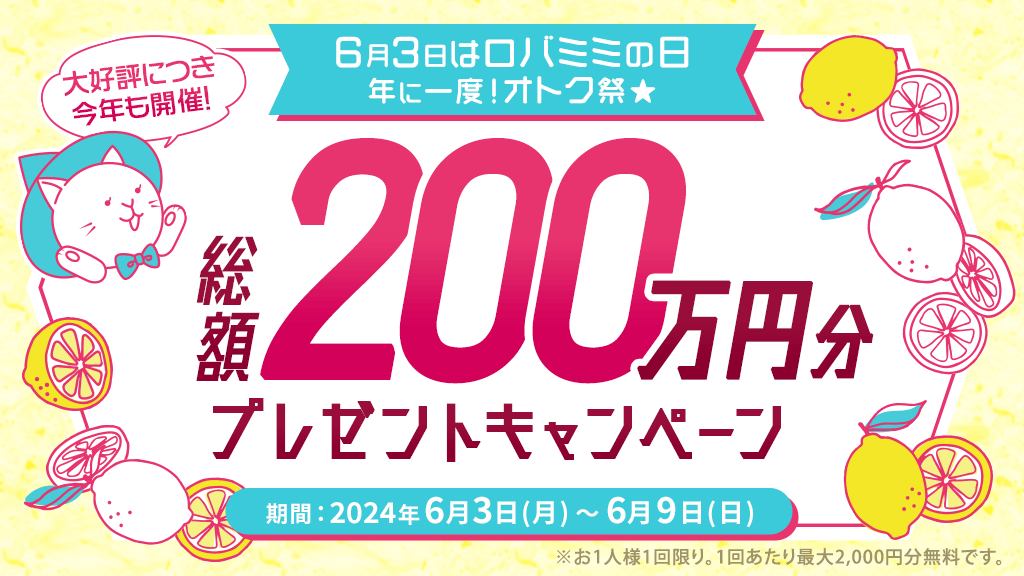 【総額200万円分プレゼント!】6月3日は年に一度のロバミミの日!お得な3大キャンペーン開催!