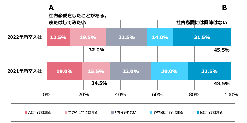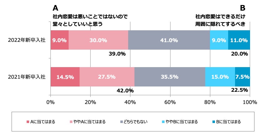 - 「社内恋愛は悪いことではないので堂々としていいと思う」、2022年新卒社員の39.0%
