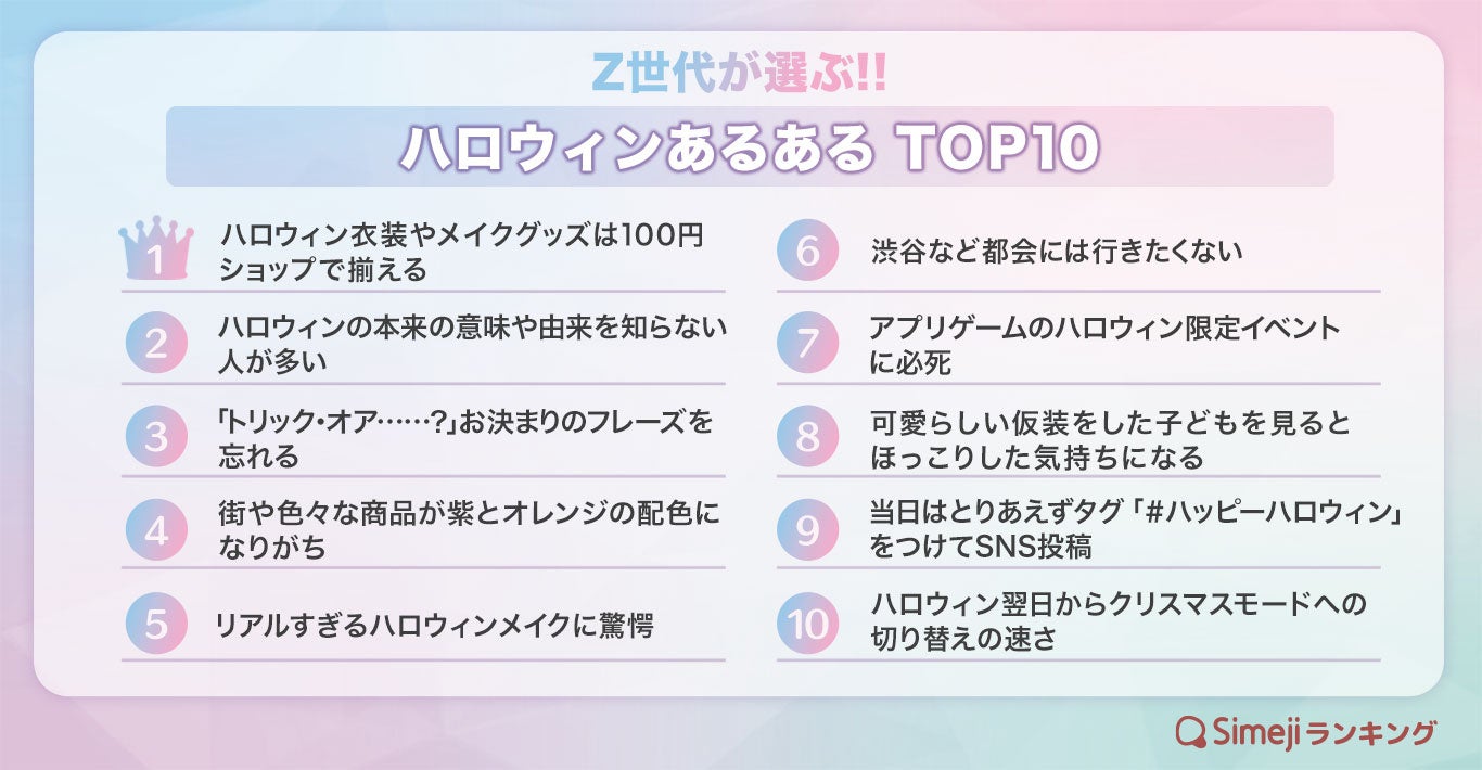 【Simejiランキング】Z世代が選ぶ!!「ハロウィンあるあるTOP10」