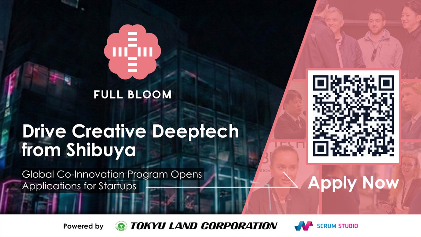 東急不動産株式会社(本社:東京都渋⾕区、代表取締役社⻑:星野浩明、以下「東急不動産」)とスクラムスタジオ株式会社(本社:東京都港区、代表取締役社⻑:髙橋正⺒、以下「スクラムスタジオ」)が、渋谷サクラステージ(東京都渋谷区)内「SAKURA DEEPTECH SHIBUYA(以下「SDS」)」で運営する事業共創プログラムの第二期を「Full Bloom」と題し、スタートアップの募集を開始しました。