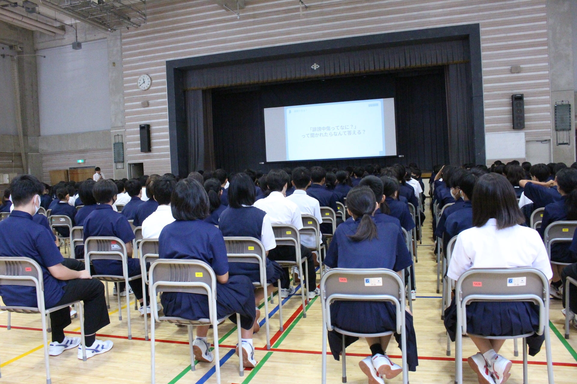 SNS等における誹謗中傷のお話を中心に、「被害者にも加害者にもならないために」を趣旨としてご講演をいただきました。生徒にとって身近で、実際に運営している貴社からの具体的なお話に、生徒の関心も高く積極的に参加している様子がありました。