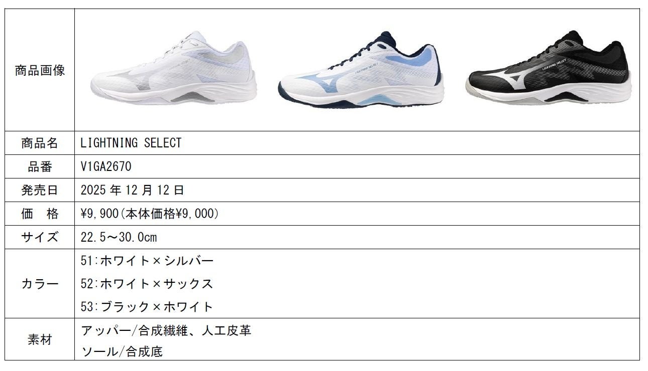 ミズノは、より高く速く跳びまわるための機能性を追求した「WAVE LIGHTNING ELITE(ウエーブ ライトニング エリート)」「LIGHTNING SELECT(ライトニング セレクト)」を12月12日にミズノ直営店、ミズノ品取扱店で発売します。