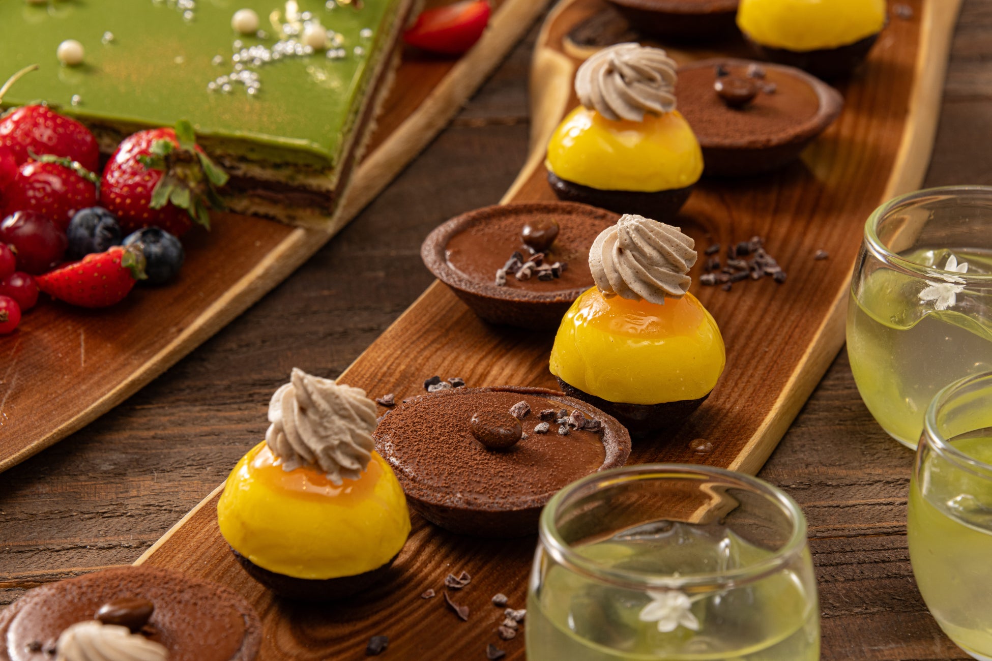 抹茶のツリーケーキ/栗のオペラ/柚子とホワイトチョコレートのケーキ/チェリーとベリーのムース/マロンパッション/洋梨のコンポート/コーヒーとチョコレートのタルト/スパイスクグロフケーキ/モワルーショコラ/ピスタチオとストロベリーのケーキ/シュトーレン/ジンジャーゼリー など