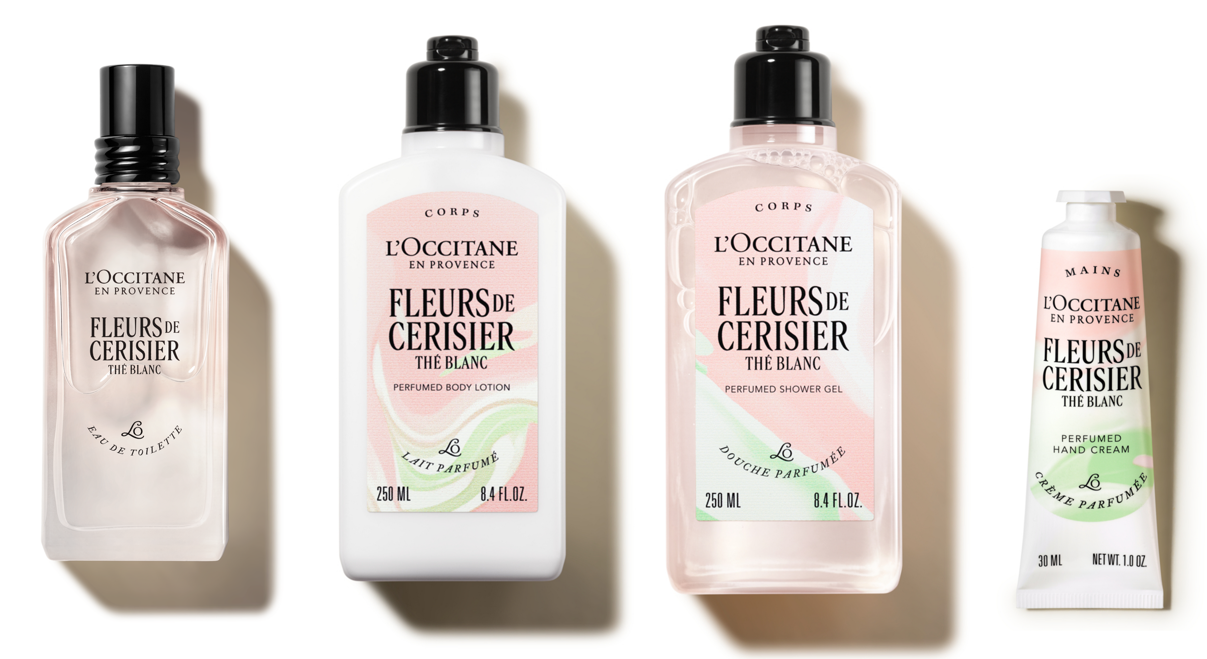 リュベロン産チェリーの天然エキスを配合し、肌をなめらかに整えながら、春を祝う桜とホワイトティーの香りが全身を包み込みます。ライフシーンに合わせてアイテムを選んだり、ボディケアアイテムからフレグランスまでをアッサンブラージュ(香りを重ねること)することで、より深く香りを楽しむことができます。