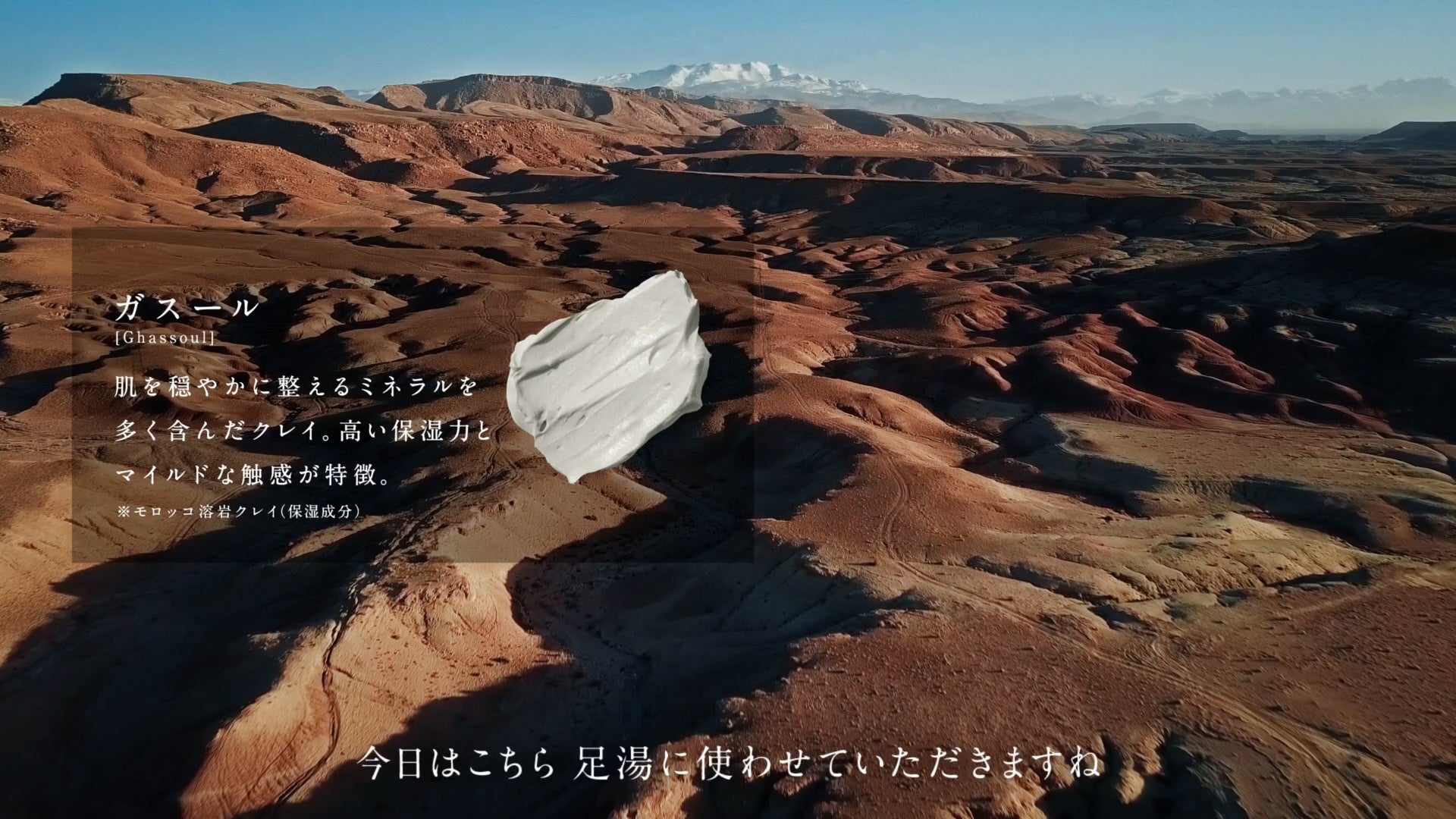 ・ガスール*1:肌を穏やかに整えるミネラルを多く含んだ泥。高い保湿力とマイルドな触感が特徴。汚れや皮脂の吸着効果に加え、汗のべたつきや肌のざらつきを除去する効果もあるため、そのままお風呂に入浴剤として入れたり、頭や体を洗う時にも使用できる。DROASのダメージリペアシリーズに配合している。
