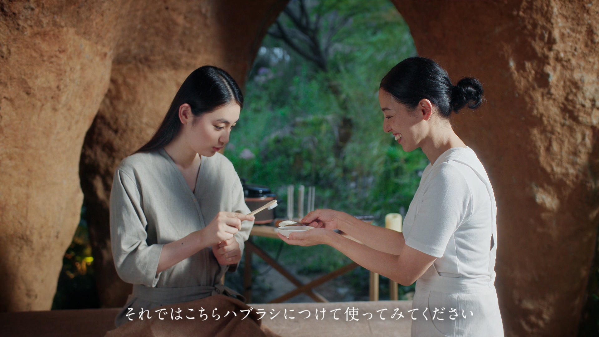 泥は何億年も前から人の歴史とともに積み重なってできた地球からの美の贈り物。DROASはそんな常に脚光を浴び続ける俳優 八木莉可子さんが都会の喧騒から離れて、大自然に囲まれたクレイスパ空間の中で、DROASが提案する簡単なクレイセルフケアを体験していきます。