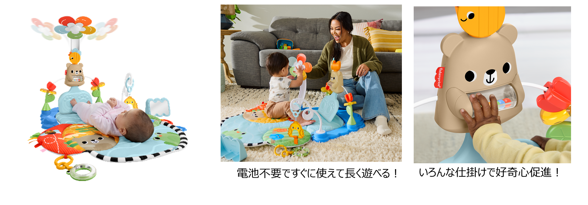 ✓ 人気のプレイジムより電池不要の「キックでゆらゆら!ごきげんプレイジム」が新登場!