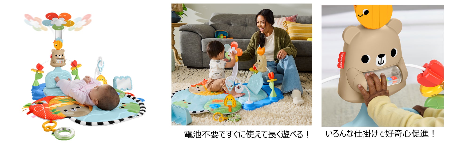 世界大手の玩具メーカー、米国マテル社の日本法人マテル・インターナショナル株式会社(本社:東京都中央区、代表取締役社長:石井 恵三)は、90年以上の歴史をもつベビー・プリスクール向け玩具グローバル売上No.1*ブランド「フィッシャープライス」から、一人遊びで自然と発達を促し、親子のコミュニケーションも広がるアイテム「チャターフォン」、「キックでゆらゆら!ごきげんプレイジム」、「おやこでお揃い コーヒーカップ歯固め」など8種類が3月下旬に、Amazonや楽天ECサイト他、全国の玩具売り場・玩具販売店等にて発売を開始します。