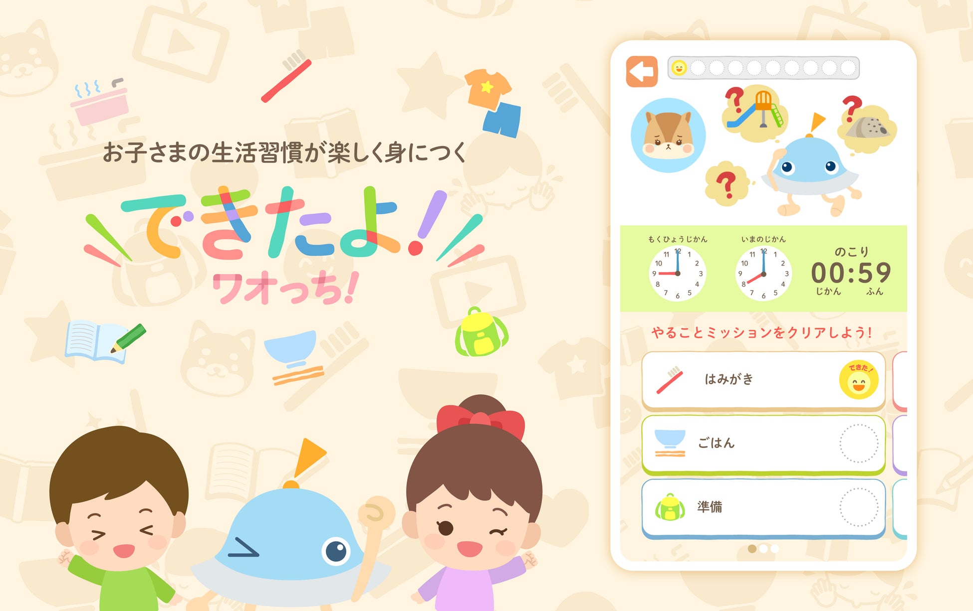 1,800万ダウンロード突破の大人気子ども向け知育アプリシリーズ「ワオっち!」から、お子さまの生活習慣が楽しく身につく子育てサポートアプリ『できたよ!ワオっち!』をリリース! 3月18日(月)配信開始