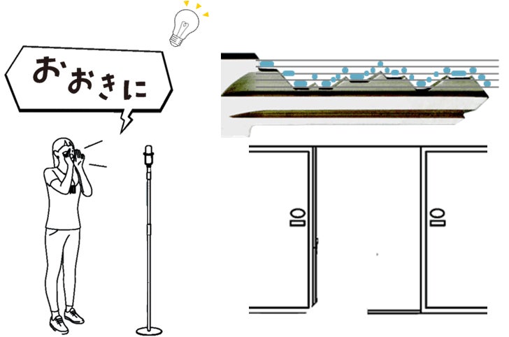 「key voice~開けゴマの世界~」は、来場者が発話した大阪弁のイントネーションを音声認識で判定し、設定された評価基準を満たした正しいイントネーションで発話すると、自動ドアが開く仕組みになっています。