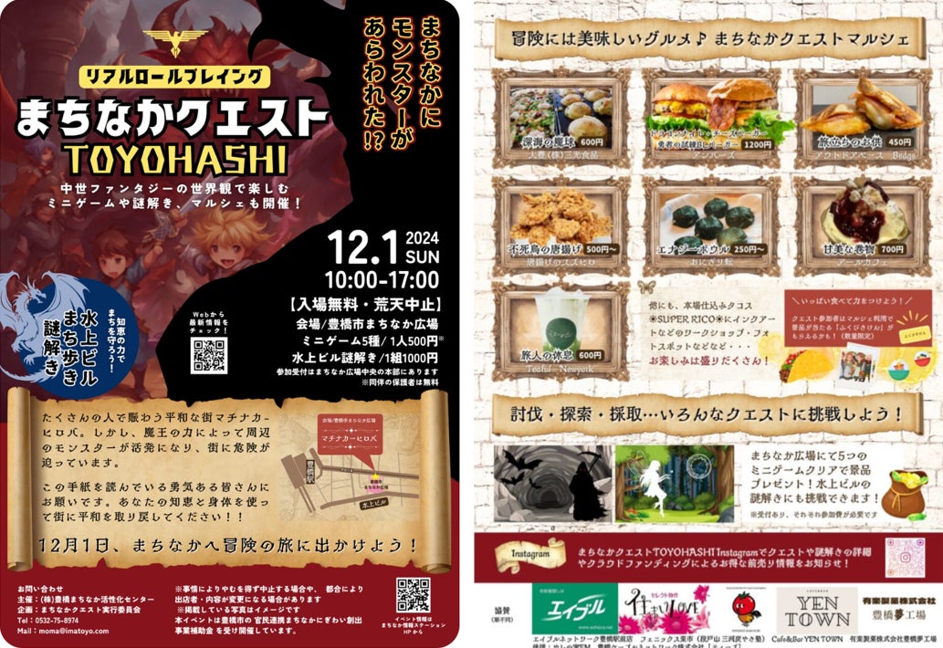 12月1日は愛知・豊橋のまちなか広場を舞台にリアルロールプレイングゲーム「まちなかクエストTOYOHASHI」(入場無料)