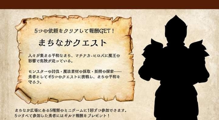 参加費は1人500円。まちなか広場にある5種類のミニゲームに1回ずつ参加できます。5つすべて参加した勇者には、ギルド報酬がプレゼントされます。