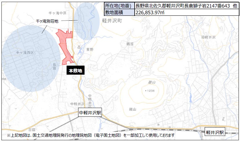 本プロジェクトでは、西武グループが長野県軽井沢町「千ヶ滝地区」に所有する約22haの広大な敷地を活用し、次世代のリゾートのあり方を見据えた大規模複合開発を行ってまいります。千ヶ滝地区は、1919年に西武グループが分譲を開始した千ヶ滝別荘地を端緒として、100年以上のまちづくりの歴史を有しております。その中でも本敷地は、千ヶ滝別荘地の中心に位置しており、かつてはスケートリンク・ホテル・温泉など多彩な機能が存在し(現在は「軽井沢 千ヶ滝温泉」のみ営業中)、まちの賑わい創出に貢献してまいりました。本プロジェクトでは、このような歴史と豊かな自然環境を踏まえた上で、西武グループ、野村不動産それぞれの強みを活かした強固なパートナーシップのもと、これからの100年につながるエリア価値向上に取り組んでまいります。