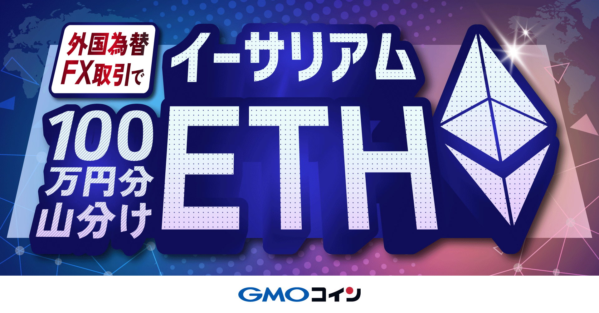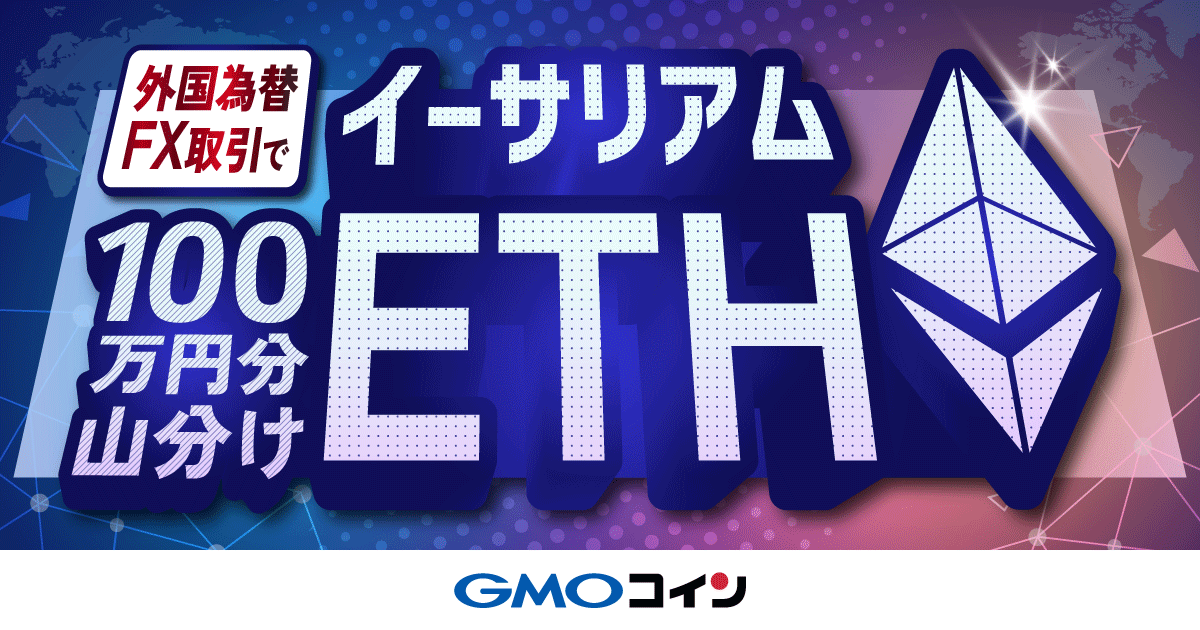 GMOコイン:外国為替FX の取引で100 万円分のイーサリアム(ETH)⼭分けキャンペーンを開催︕