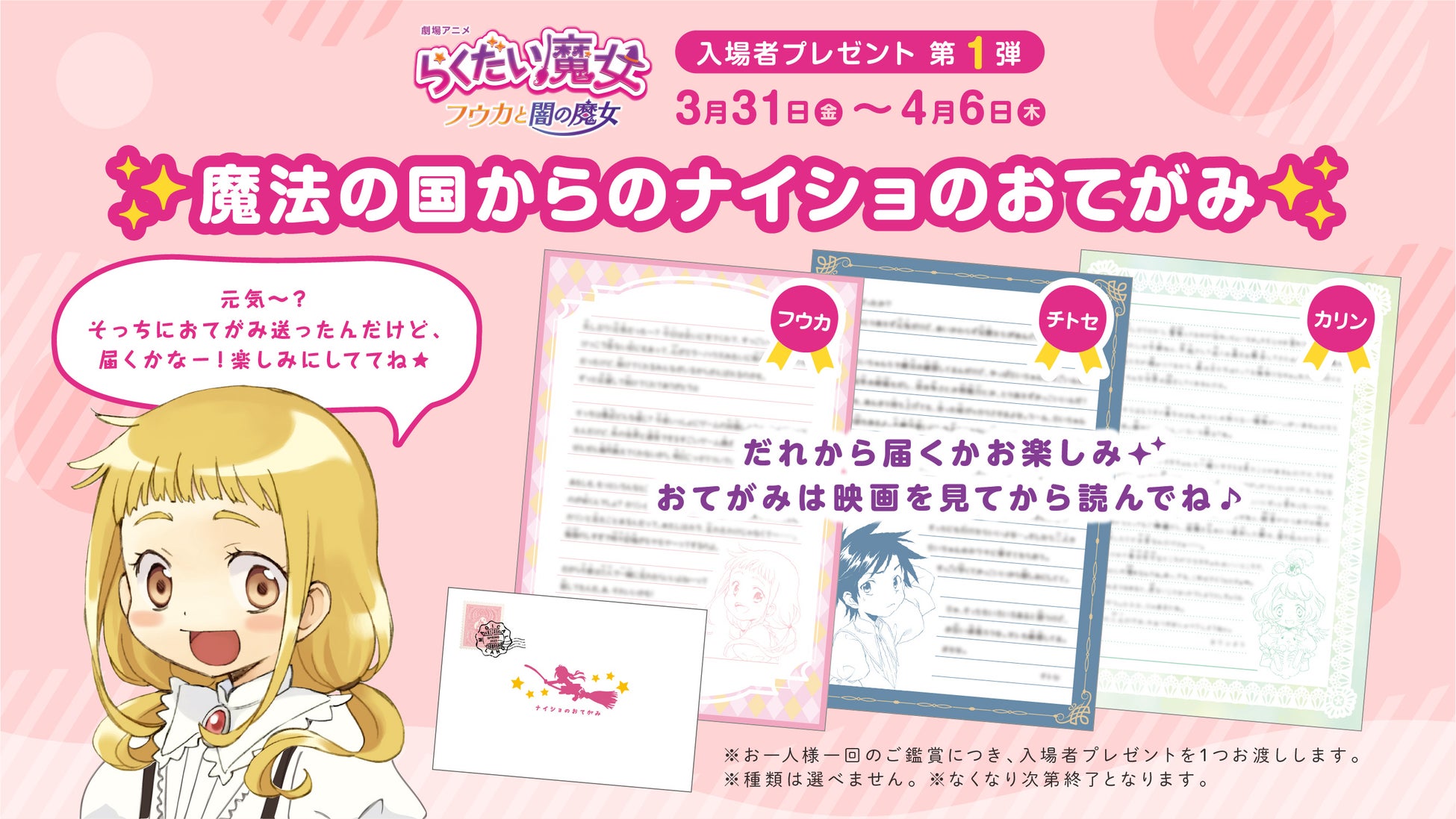 3/31(金)公開の劇場アニメ「らくだい魔女 フウカと闇の魔女」入場者プレゼントの配布が決定!!フウカたちから「ナイショのおてがみ」をお届けします★