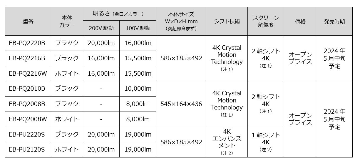 新商品『EB-PQシリーズ』に4Kの高画質を実現する2軸シフトテクノロジー「4K Crystal Motion Technology」(注1)を搭載し、高輝度かつ高解像度による迫力あるプロジェクションでイマーシブな空間演出での映像体験価値の向上を実現します。