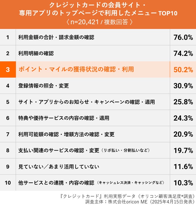 「ポイント・マイルの獲得状況の確認・利用」は50.2%