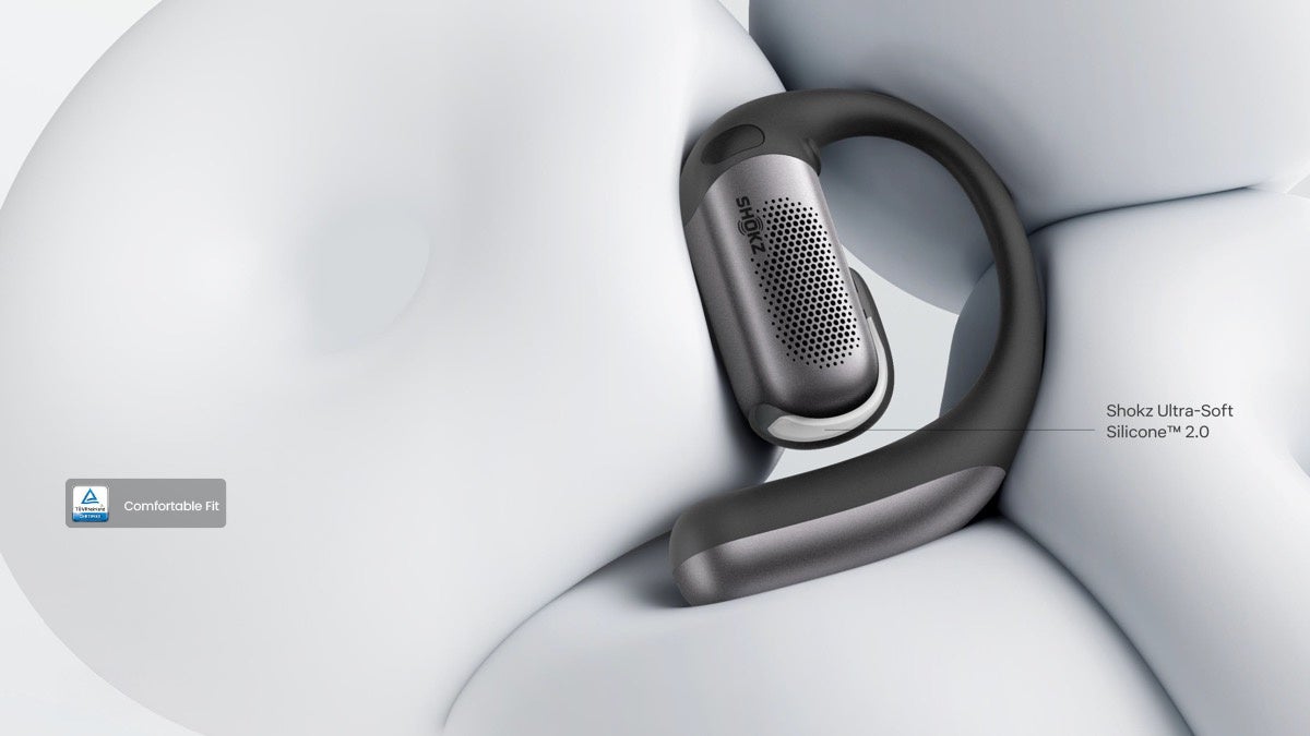 Shokz Ultra-Soft Silicone™ 2.0により、肌にやさしい柔らかな着け心地を実現。オープンイヤーデザインで耳を圧迫しないため、朝から夜までずっと快適に過ごせます。
