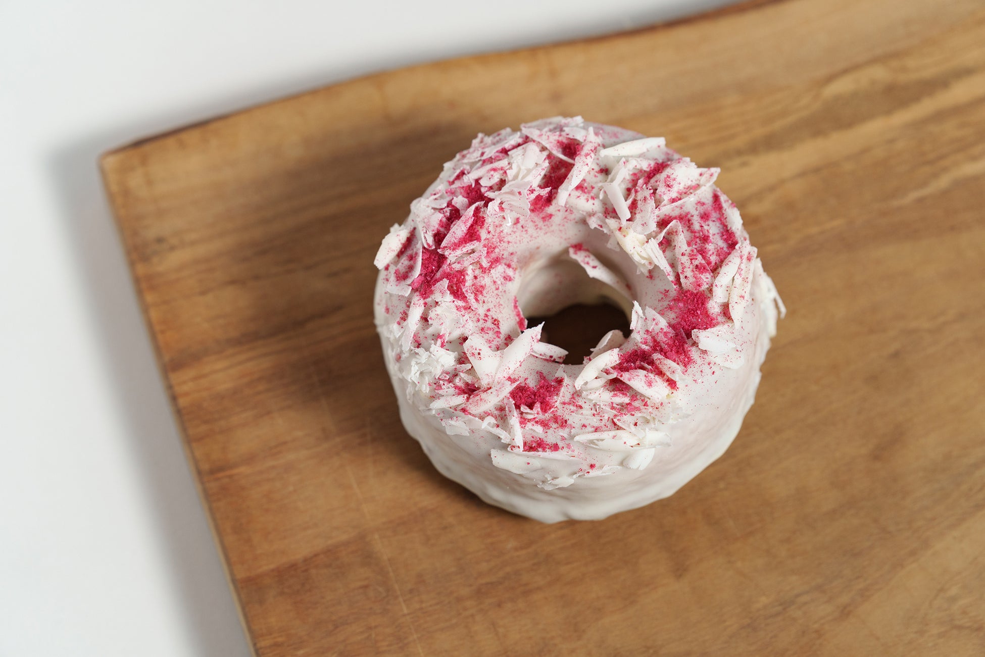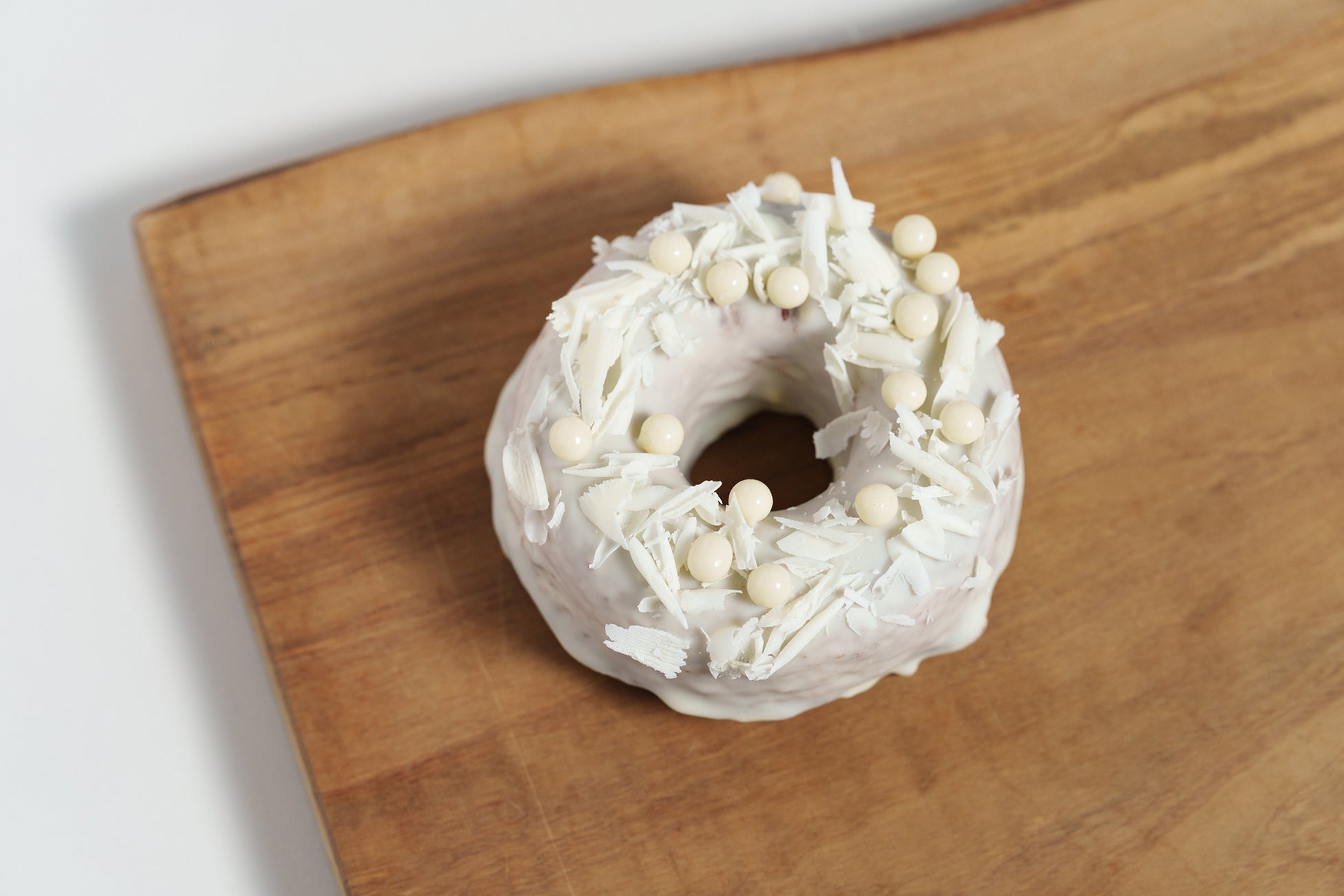 本コラボの共通点である“ミルクバター”をメインにしたドーナツ生地を開発し、ロゴや牛柄、ふわふわの泡をイメージした3種類をご用意いたしました。コラボドーナツは、焼きドーナツをホワイトチョコで真っ白にコーティングし、その上にココアを纏ったフィアンティーヌやラズベリー、ホワイトチョコをトッピング。ドーナツを包むパッケージも特別仕様で、赤箱の世界観をkoe donutsらしく表現しました。