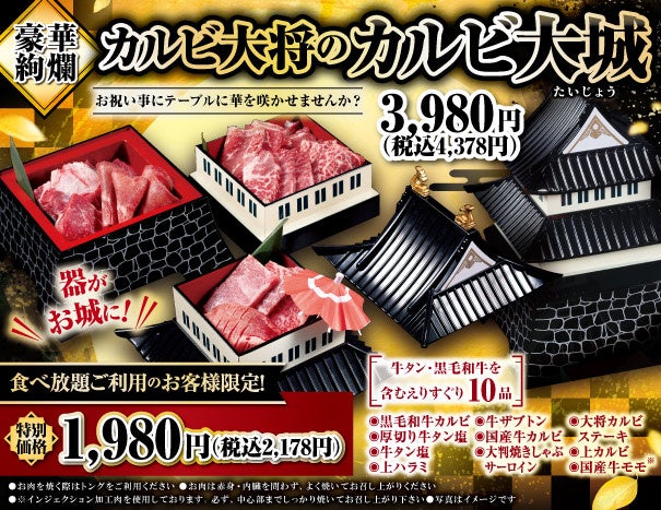 思わず写真を撮りたくなる!高さ約25cm!カルビ大将が「カルビ大城」を築城?!お城の中身は豪華なお肉が勢ぞろい