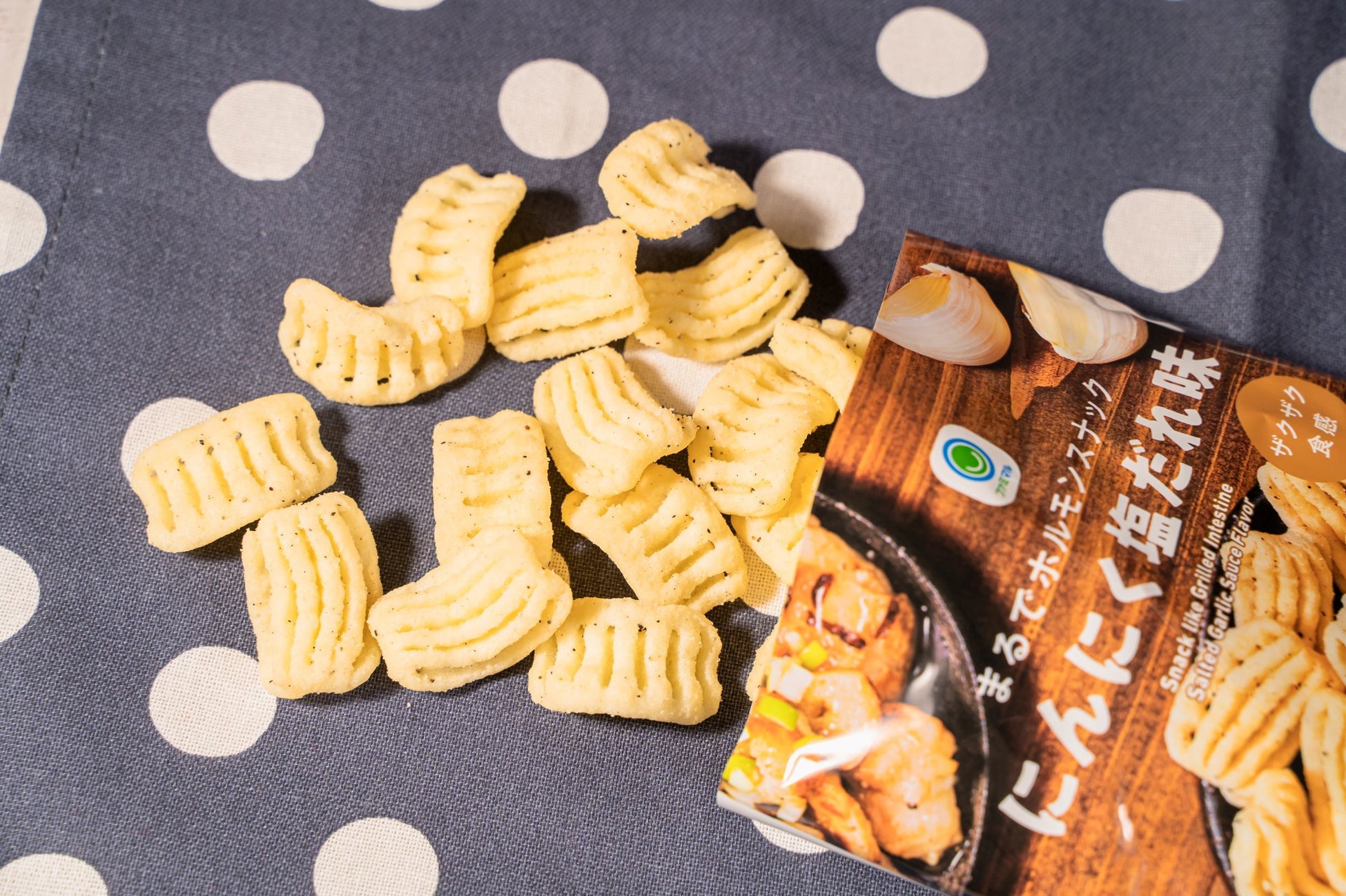 【内容】「ホルモン焼き」をイメージさせる見た目と味わいが楽しめるスナックです。にんにくをしっかり効かせた濃厚仕立ての塩だれ味とザクザクとした食感が食欲をそそります。お酒のおつまみにオススメの商品です。