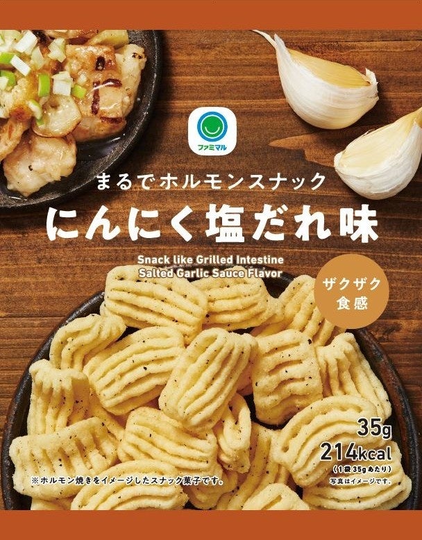 ファミリーマートでは、家庭でプチ贅沢を味わっていただける商品や巣ごもり生活での備蓄需要に対応した冷凍食品など、コロナ禍のライフスタイルにあわせた商品を多数展開してまいりました。このたびは、コロナ禍に定着した「家飲み」でのおつまみ需要に応えるお菓子として、外食店で人気の「ホルモン焼き」をイメージしたスナック菓子「まるでホルモンスナック にんにく塩だれ味」を新発売いたします。「ホルモン焼き」独特のジューシーな味わいはもちろんのこと、見た目も「ホルモン焼き」そっくりに仕上げた商品です。