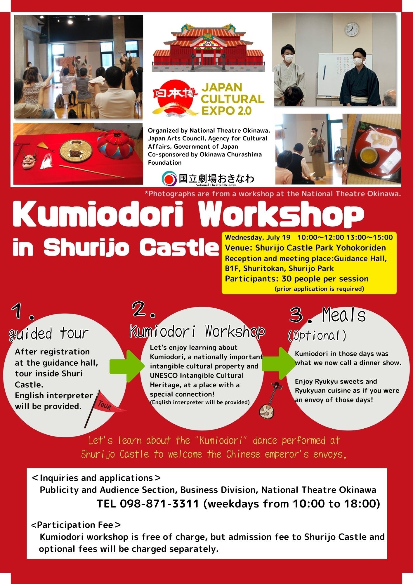 ガイドツアー及び組踊ワークショップは、英語通訳者付きです。