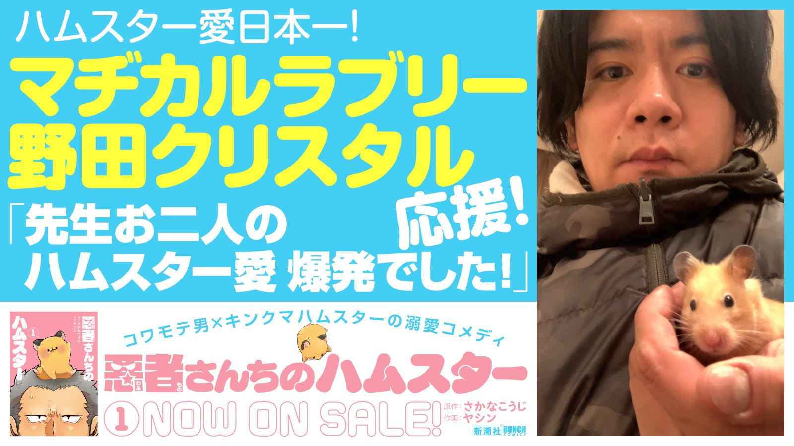 単行本発売に際し、自身も愛ハム家で知られる、お笑いコンビ・マヂカルラブリーの野田クリスタルさんも『先生お二人のハムスター愛 爆発でした!』と太鼓判を押す1冊となっております。