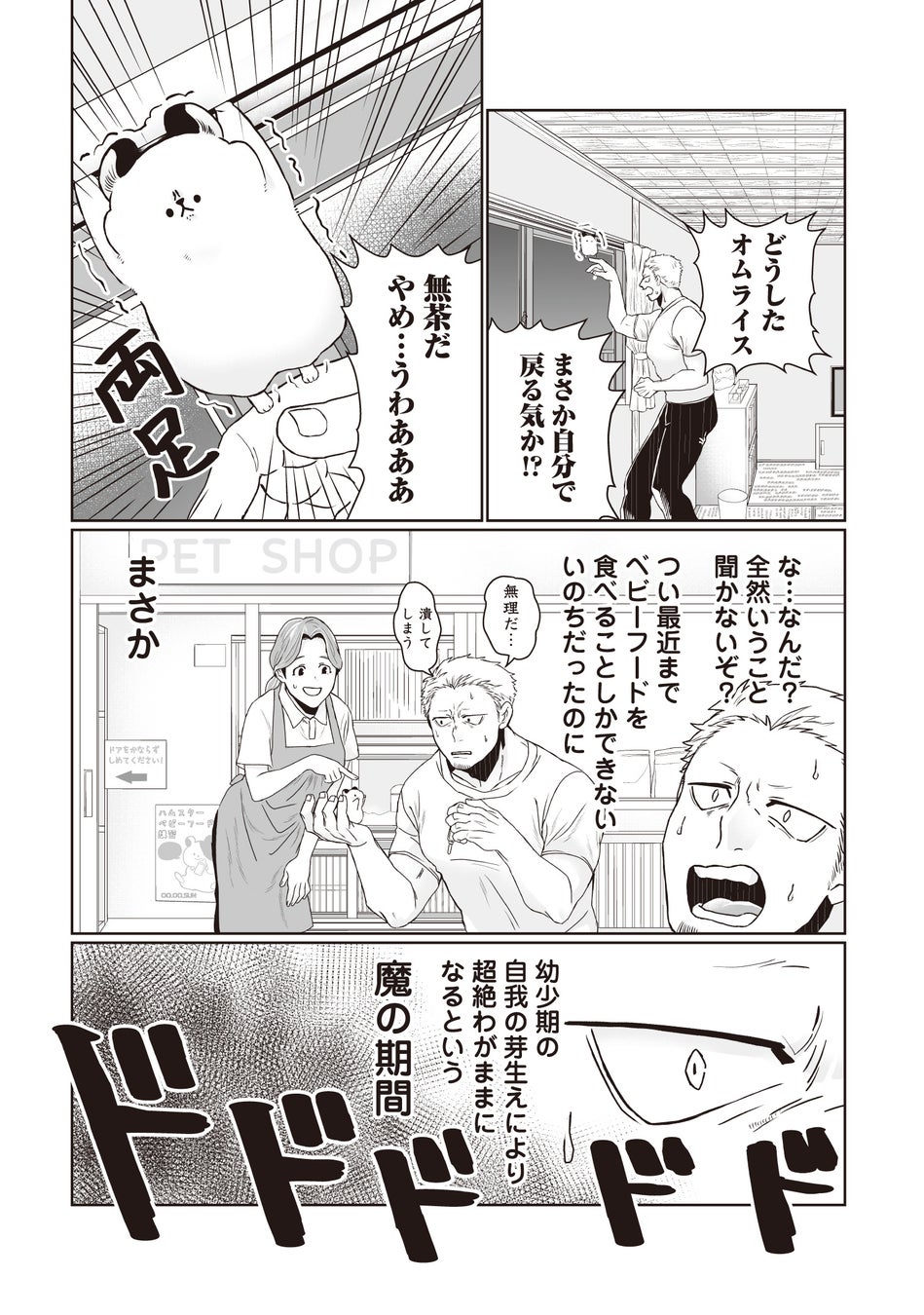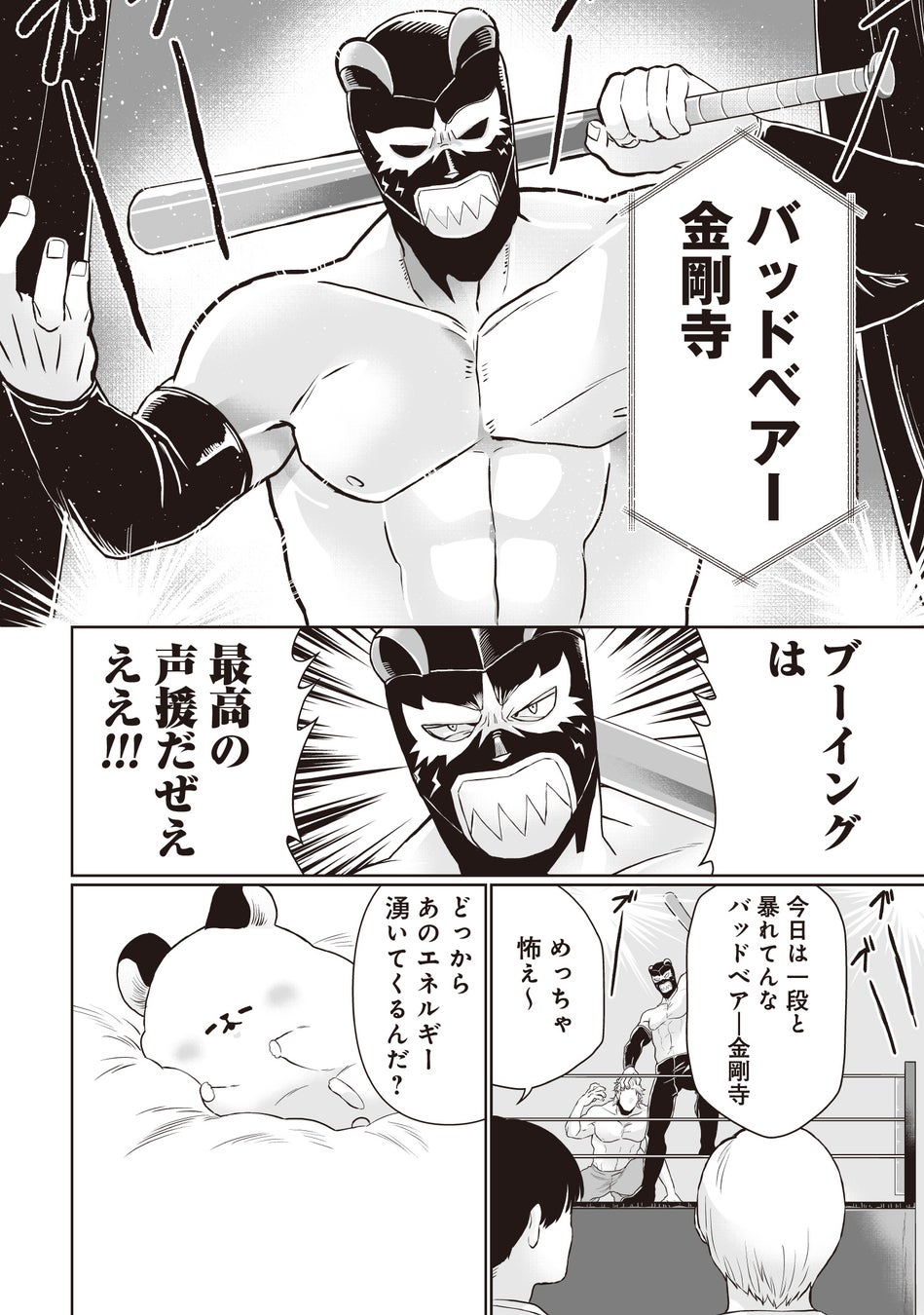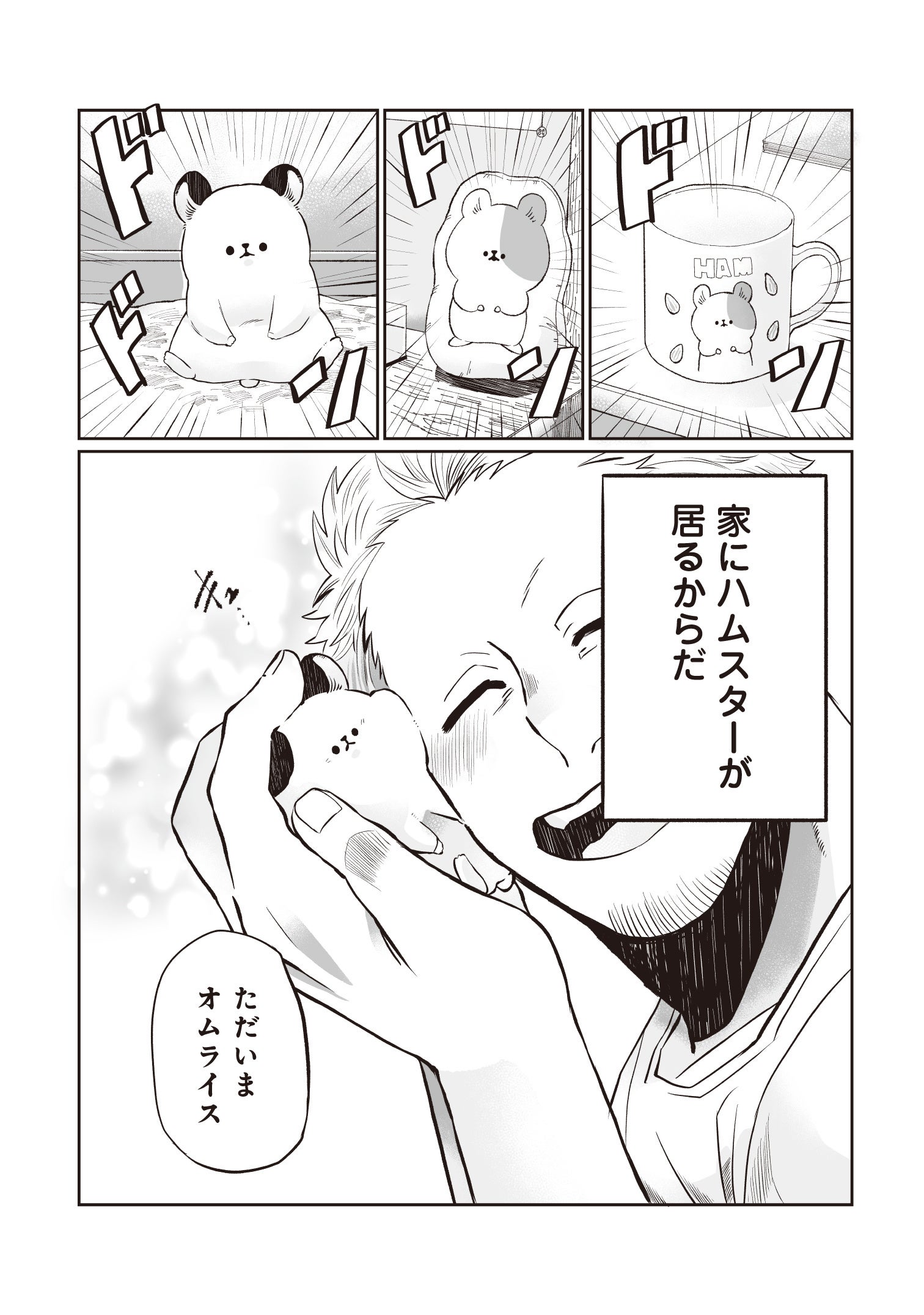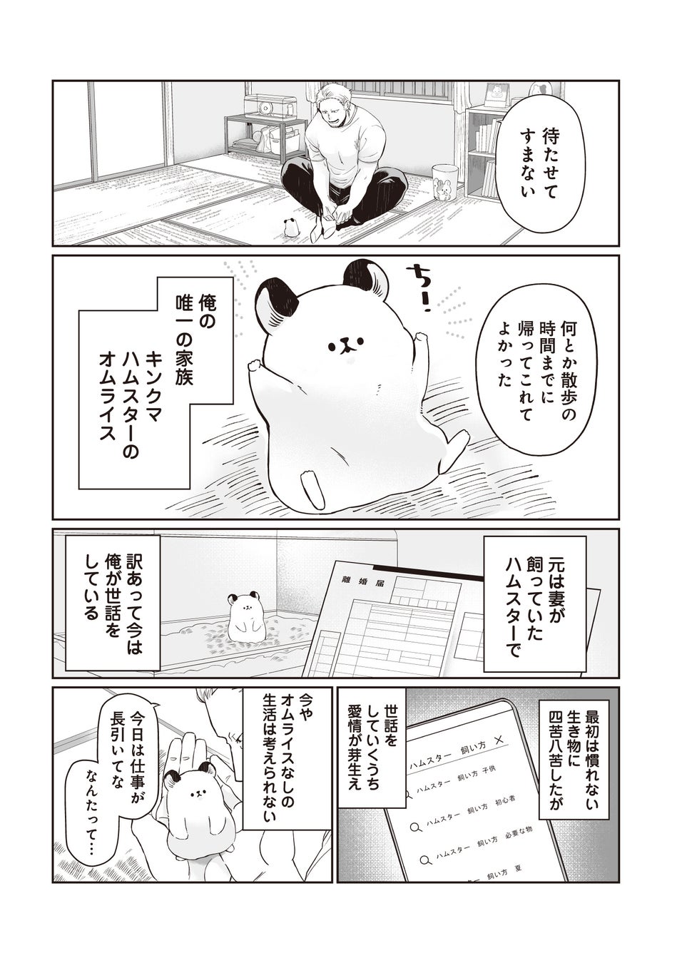 職業・悪役レスラーの金剛寺は、その屈強な体とコワモテから試合でもプライベートでも恐れられている。しかし彼の家には溺愛するキンクマハムスターのオムライスが待っていて……!? 悪役レスラーがハムスターに癒されるムキふわコメディ開幕!!