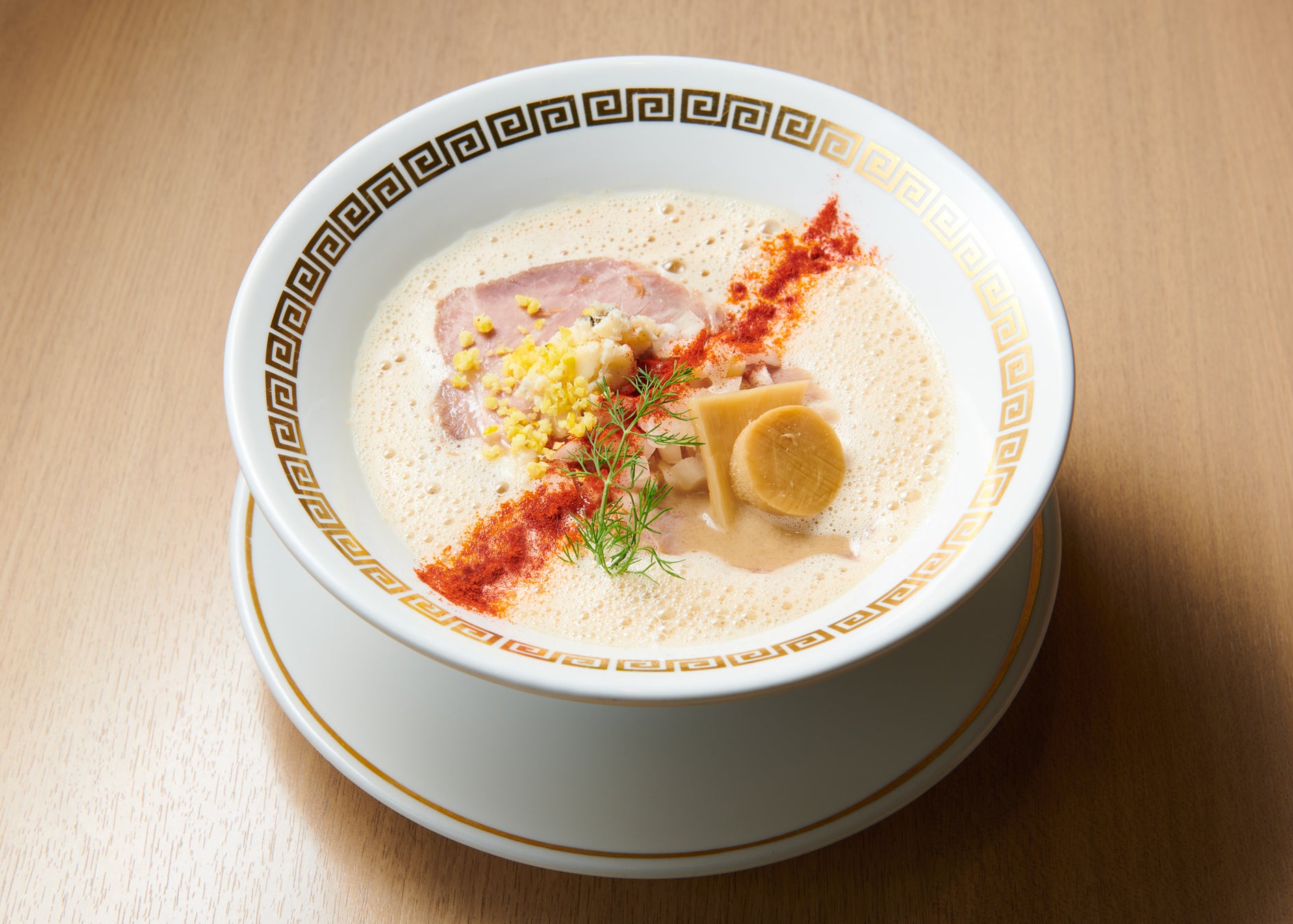「鶏soba 座銀」「麺’s room 神虎」など行列ラーメン店を展開する銀の葡萄のブランドで、2018年に一号店が新大阪にオープン。「まるでラーメン屋じゃないみたいな店」をコンセプトに「ジャズの流れるモダンな店内で味もルックスも尖った2種類のラーメンがいただけます。「鯛白湯とろり」は『飲む鯛』の異名を持ち、漁港直送の天然真鯛と水のみで、約8時間炊いた濃厚スープの奥深い旨みと余韻広がる味わいが特徴。「鯛清湯さらり」は鯛の旨みが凝縮した澄んだ極上スープで、その名の通り、さらさら~と食せる一杯です。