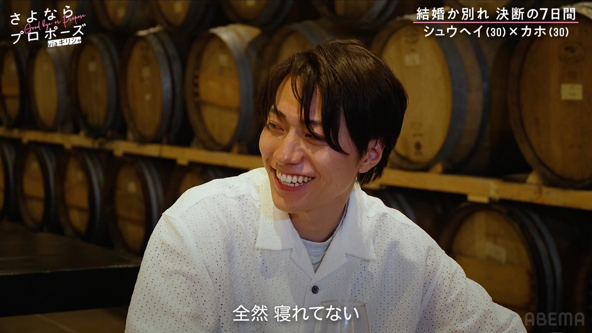 10月24日(木)放送の第6話にて食事に出かけた2人。ここでカホは「実際に別れるっていう決断を下したらシュウヘイくんはどうする?」とストレートに質問。シュウヘイは困った様子で「そのときの気持ちとしてはカホちゃんに気を遣うとかはなくて本心でどちらか(の決断)を伝えていると思う」とどこか的を得ない返しを披露します。するとこれを見守っていたスタジオメンバーは「そりゃそうやろ!(笑)」と鋭いツッコミが飛ばします。食事が進み、店員との会話を楽しんでいるとシュウヘイの口から驚くべき発言が…。「愛ってどういうことだと思いますか?」と問いかけ、店員は困ったように「難しいわ」と答えました。そこでシュウヘイの異変に気づいたカホは「この旅に来て毎日寝れている?」とシュウヘイに問いかけると、シュウヘイは「全然寝れてないね」「考えすぎちゃって」と混乱している胸の内を明かしました。