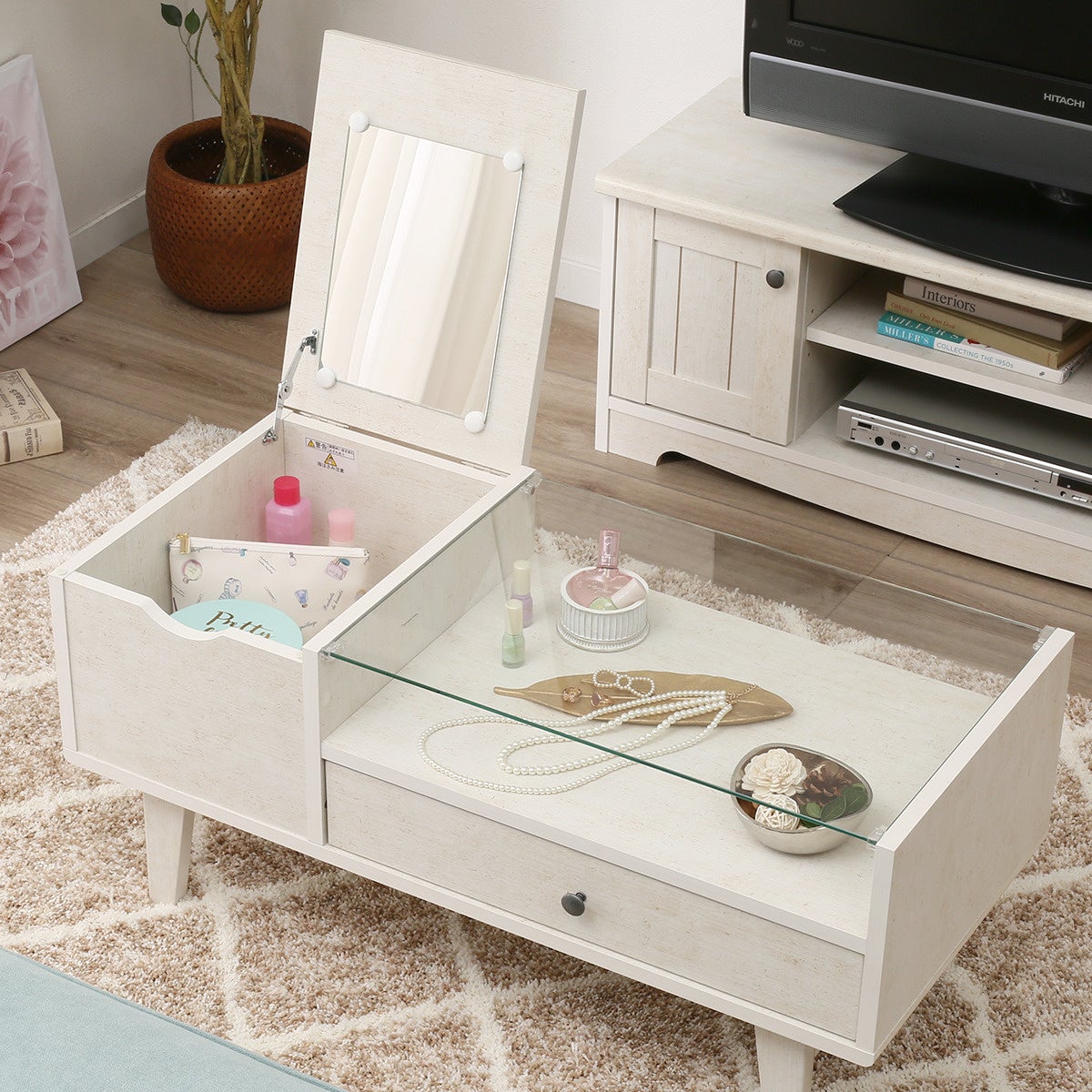 ■収納力抜群!メイクもできる一石二鳥のフェミニンなリビングテーブル