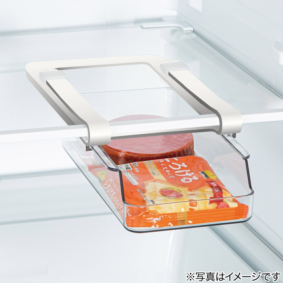 いつも冷蔵庫内で埋もれがちなスライスチーズやハムなど、厚さの薄い食材を棚下に収納。透明で中身を探しやすく、トレーを引くだけなので時短に。冷蔵庫整理の困りごとは世界共通、各国のニトリで人気の商品です!
