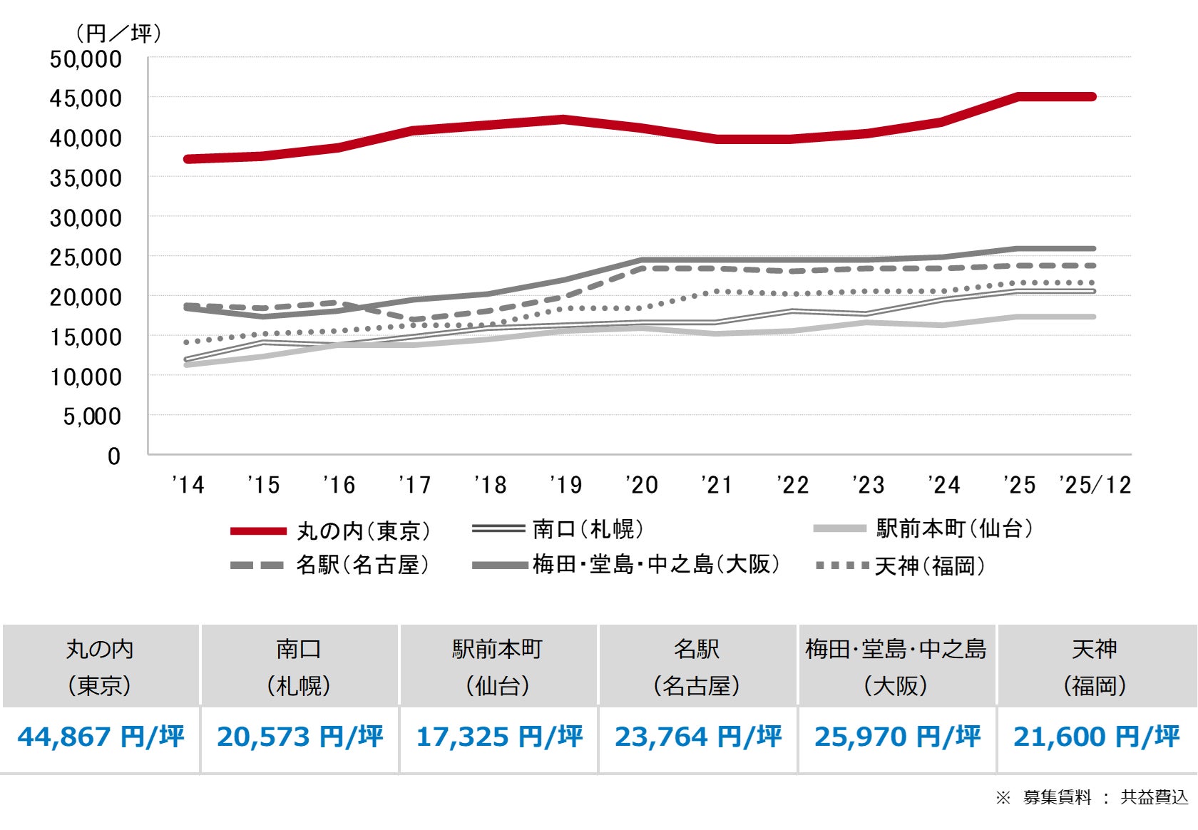 <募集賃料の推移(6大都市 大規模ビル・主要駅前地区)>