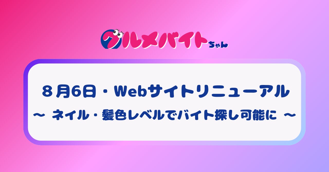 ネイルや髪色条件をレベル別で検索可能に!ショート動画求人「グルメバイトちゃん」Webサイトを本日リニューアル~無料キャンペーンも開始~