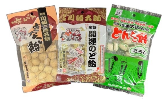 明治元年(1868年)創業。代々伝わる製法で作られた『家傳開運のど飴・開運とんとこ飴・名物きなこ飴』が有名。川崎大師名物として長年愛され続けている職人の『技』と『味』をぜひお楽しみください。