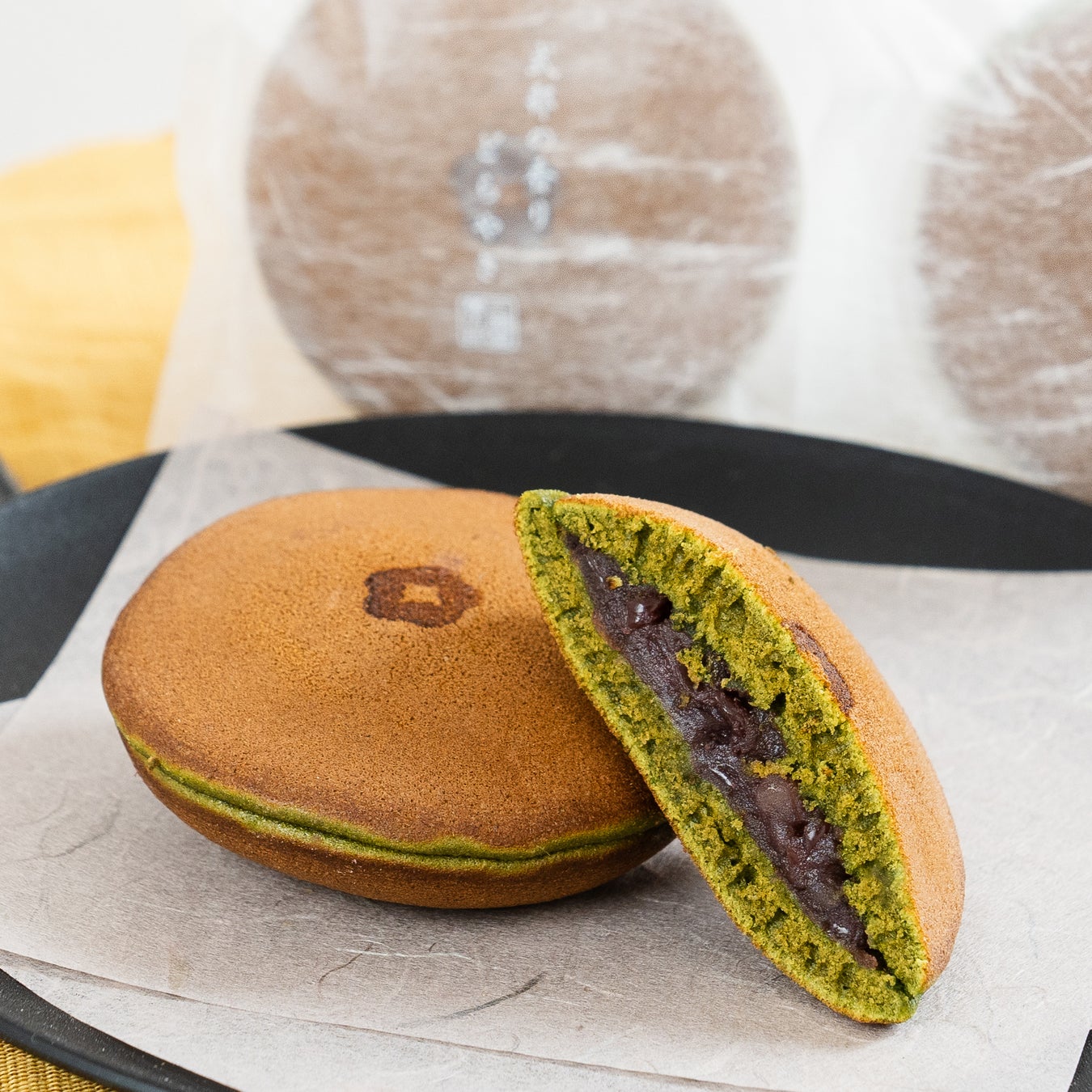 三國屋善五郎オリジナルのどらやきは、当社一番人気の「深蒸し煎茶式部の香り」の茶葉をパウダー状にして、ふんだんに練り込んだ生地は、食べるほどに濃いお茶の香りを味わえます。また北海道産の上質な小豆を使用したつぶし餡はほんのり優しい甘みです。