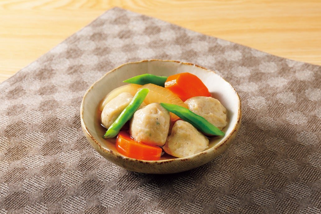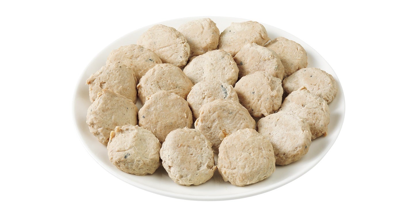 これまで廃棄または魚粉などに活用していた尻尾などの余剰部分を余すことなく活用。太刀魚の旨味で味わい深く、生姜とかつお節エキスで味を整えたふんわり食感の蒸し団子です。冷凍のままさまざまなスープの具材に、解凍してから他の具材と一緒に炒めものにも使えます。